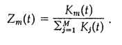 Of course, the actual ind ustry aggregate x2/x1 ratio is the capital weighted average of indivi dual firm ratios. This means that selection effects are involved in the change of the industry ratio, along with the search e ffects already analyzed, and this introduces some compli­ cations. Formally, let Iim(t) = 1 if at time t firm m has Ut = ui, and Iim(t) = 0 otherwise. That is, Iim(t) is sim ply, for each m , the random N-vector indicating which state of the factor ratio Markov process firm m is in at time t. Let Zm(t) be the capital share of firm m: