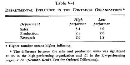 In the low-performing organization, however, the imbalance of influence between production and sales was larger, and production managers indicated a dissatisfaction with their ability to influence decisions.* Two quotations from production managers will illustrate this point:
